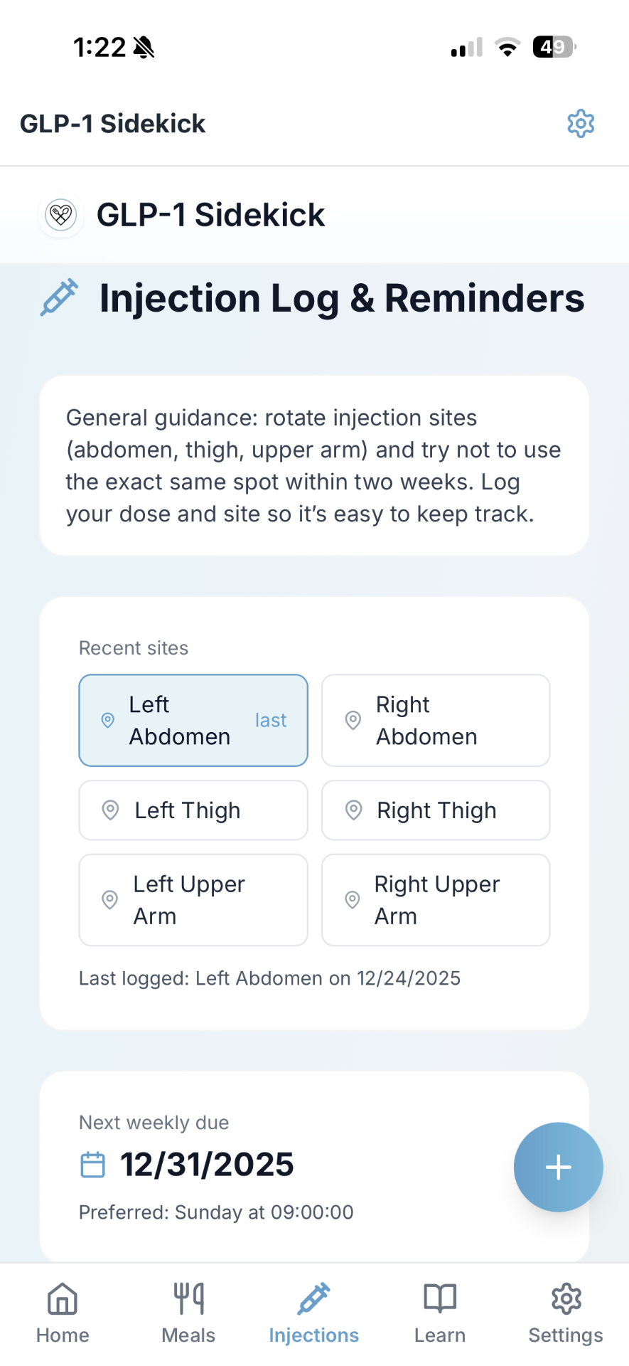 Never wonder which side you injected last. Visual tracking keeps you organized.